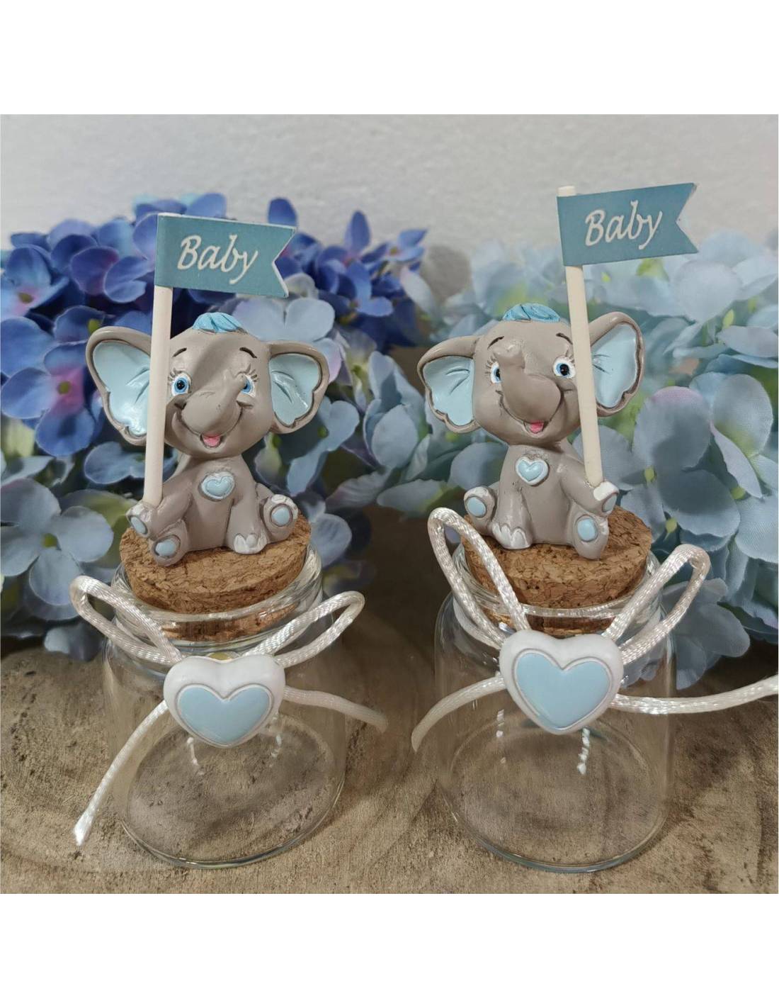Sacchetto in cotone bianco e azzurro con il tag in legno che rappresenta Topolino Baby.