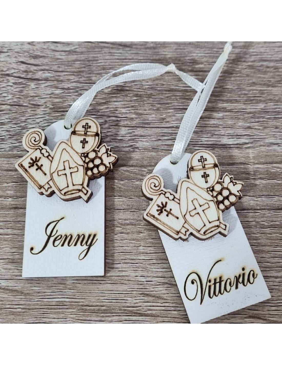 Idee per segnaposti Comunione e Cresima insieme con l'incisione dei nomi dei tuoi inviati o puoi ordinarli tutti dello stesso nome.