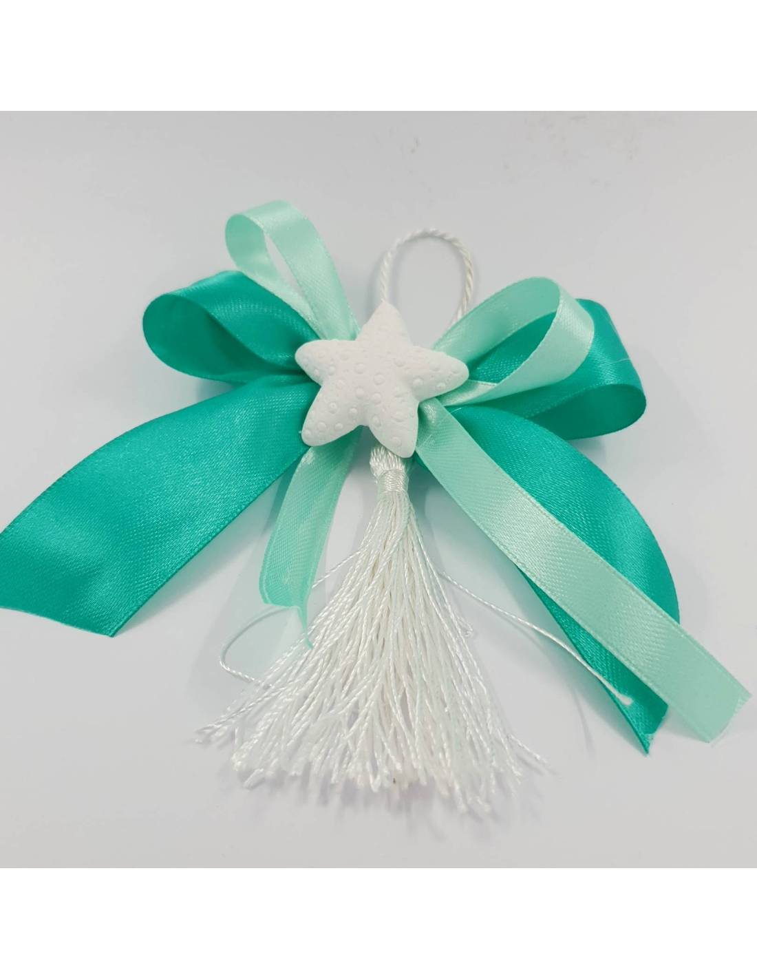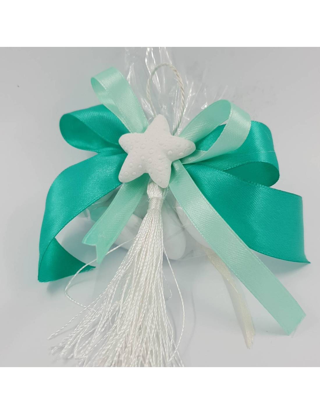 Bomboniera PENDENTE in resina a forma di chiave con immagine religiosa della prima comunione in rilievo dipinta a mano accuratamente con inciso le parole "Amore e Felicità".
