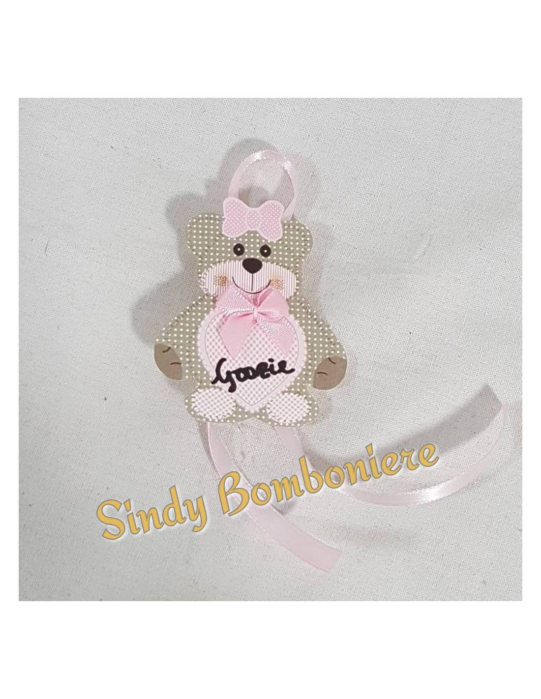 SEGNAPOSTO BOMBONIERE orsetto bimbo bimba nascita battesimo 3pz