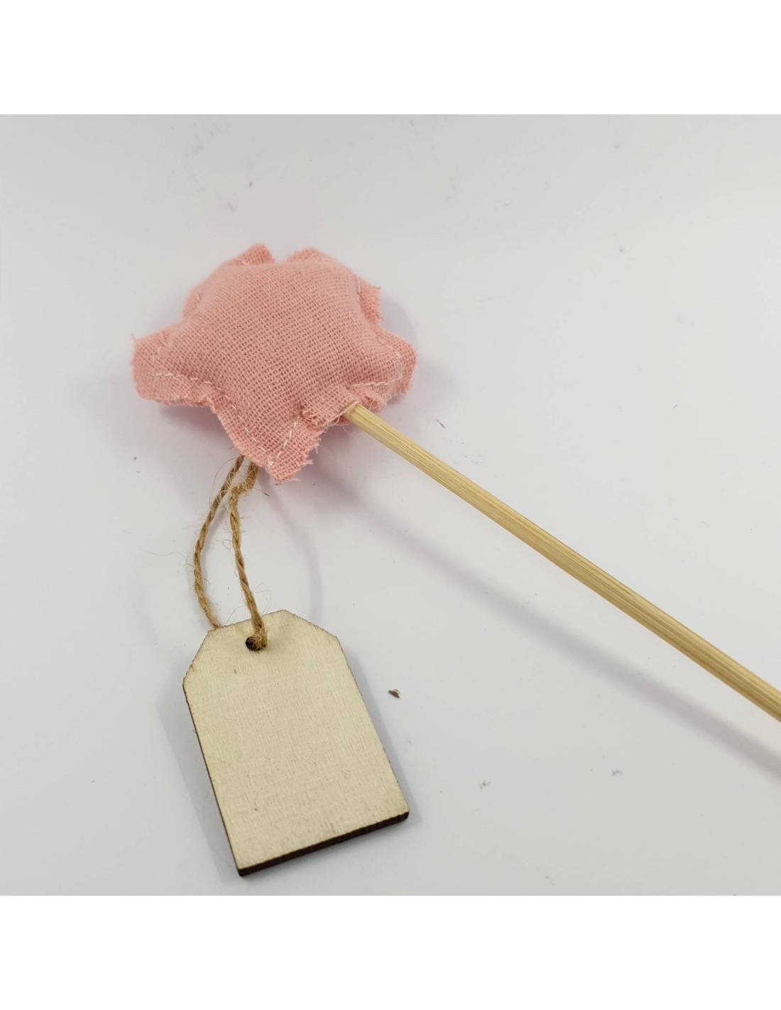 stella rosa imbottita attaccata ad una stecca in legno + una targhetta in legno con cordoncina