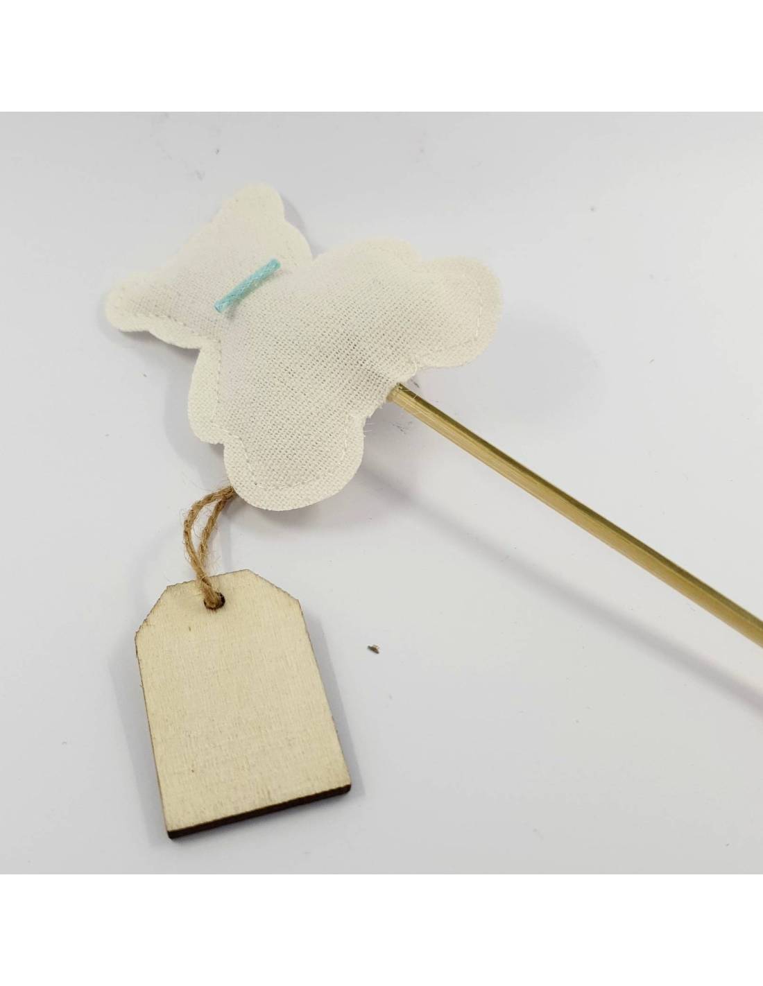 orsetto imbottito attaccato ad una stecca in legno + una targhetta in legno con sordoncina