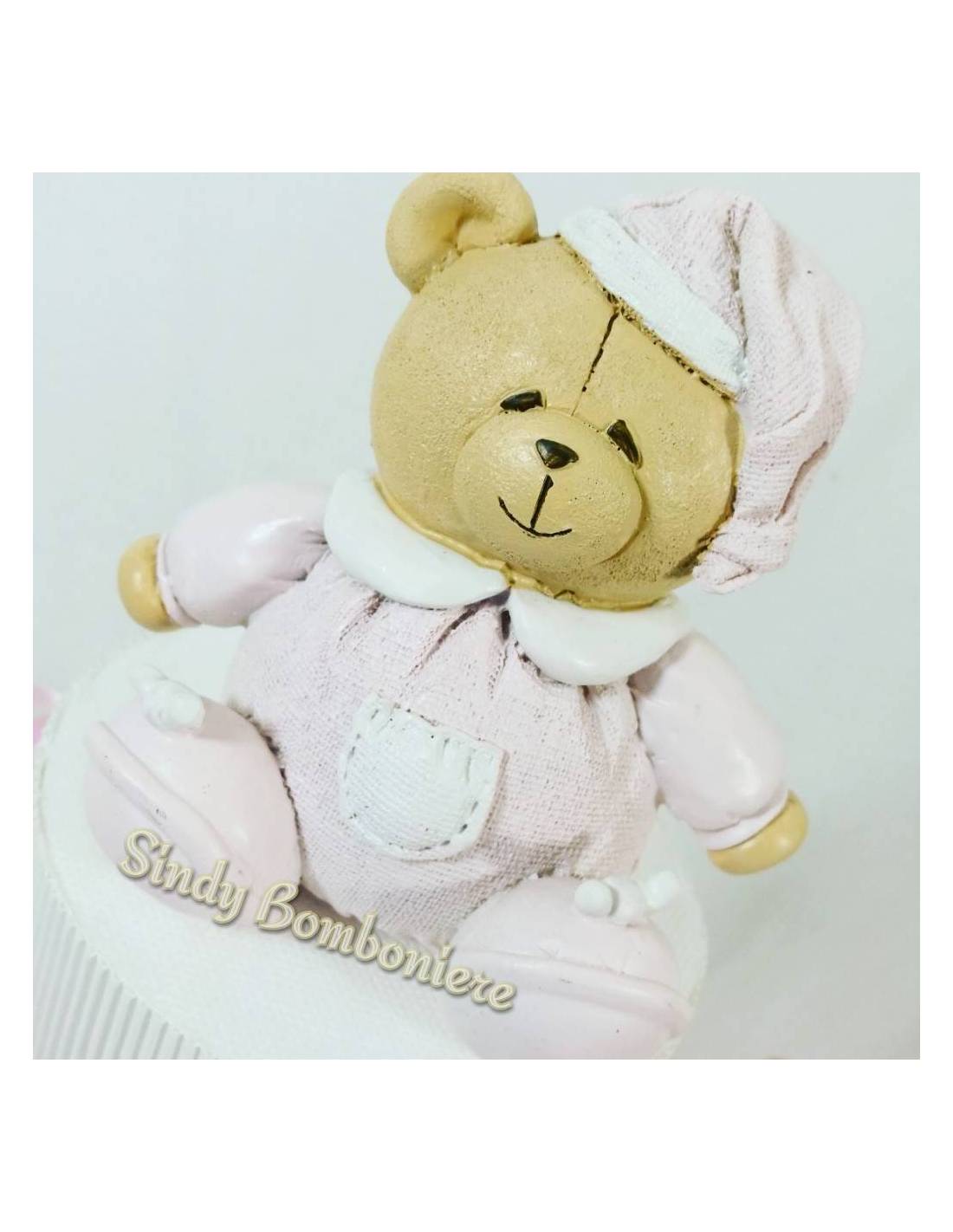 Bomboniera Battesimo orsetto rosa per bambina su torta bomboniera