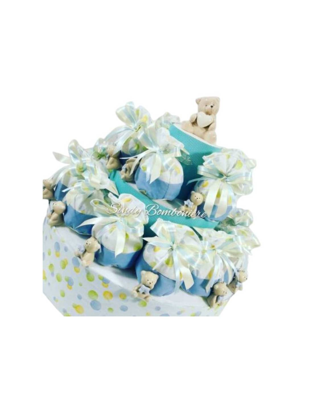 Torta bomboniera Battesimo sacchetti pois orsetto ceramica bimbo