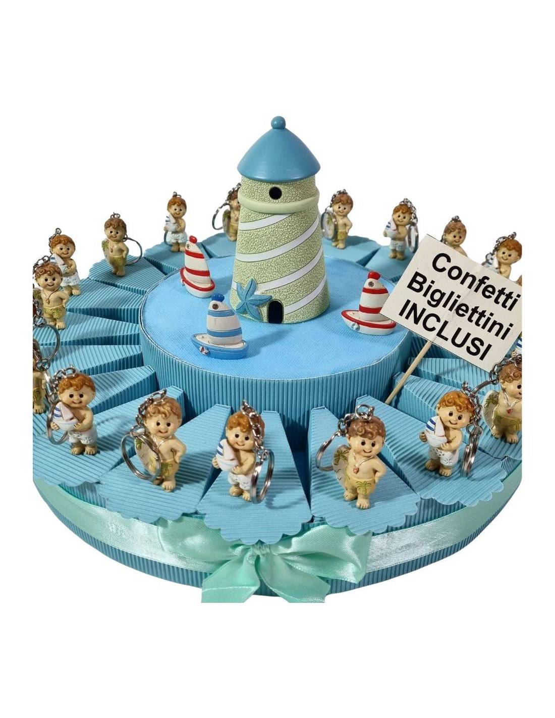 Torta bomboniera bambino surf portachiavi con faro salvadanaio