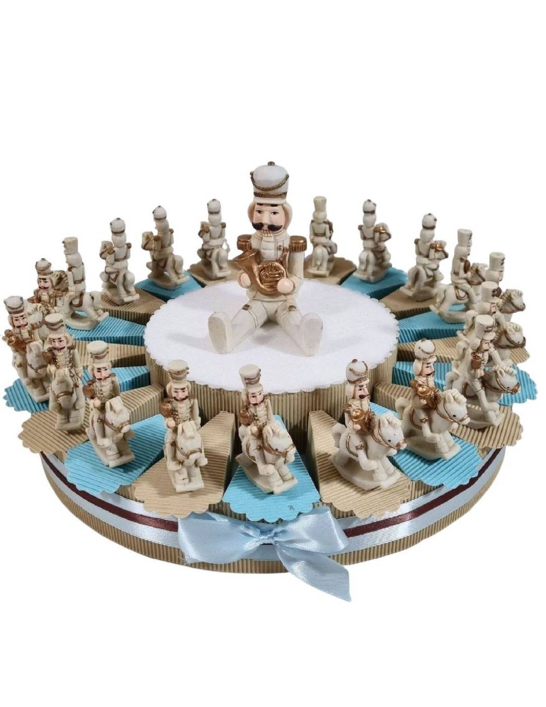 Soldatini schiaccianoci su struttura torta bomboniere personalizzabile nei colori scatoline e nastri scegliendo tu stessa.