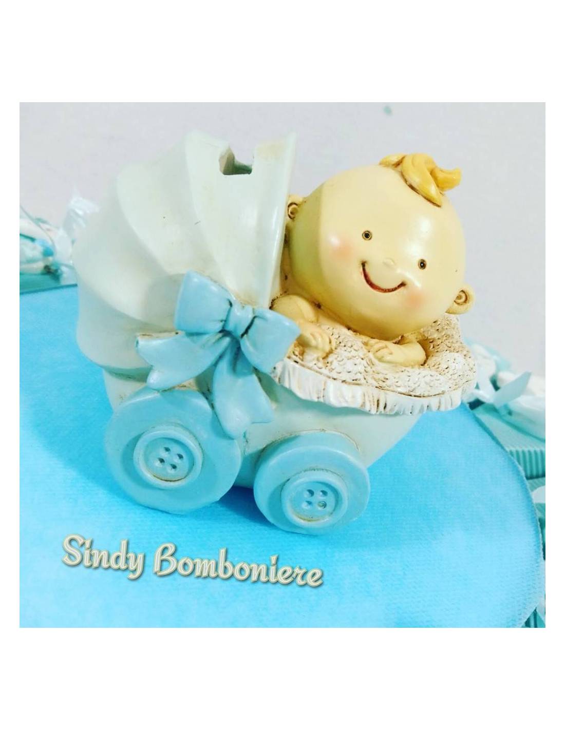 + CENTRALE CARROZZA CON BIMBO SALVADANAIO in resina dipinto a mano