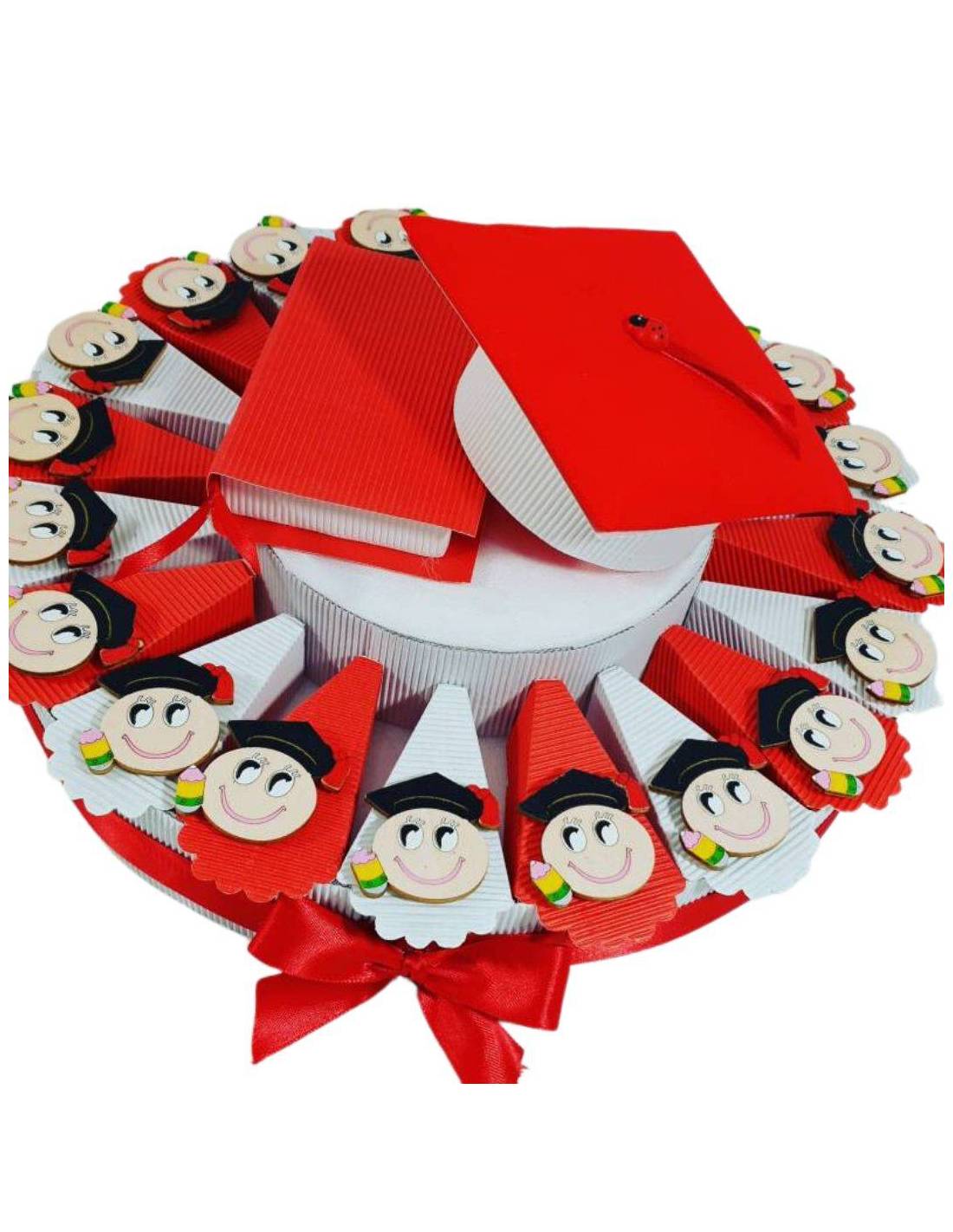 Torta laurea con smile in legno magneti dipinti a mano con centrale tocco e tesi