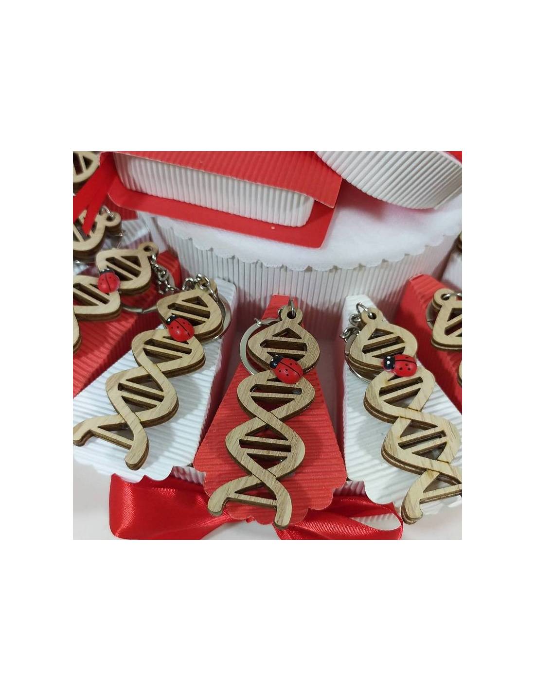 Torta bomboniere laurea biologia portachiavi DNA coccinella portafortuna confetti inclusi