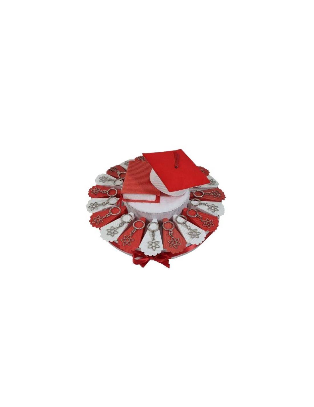Bomboniere laurea torta portachiavi atomo ideale per ingegneria spaziale.