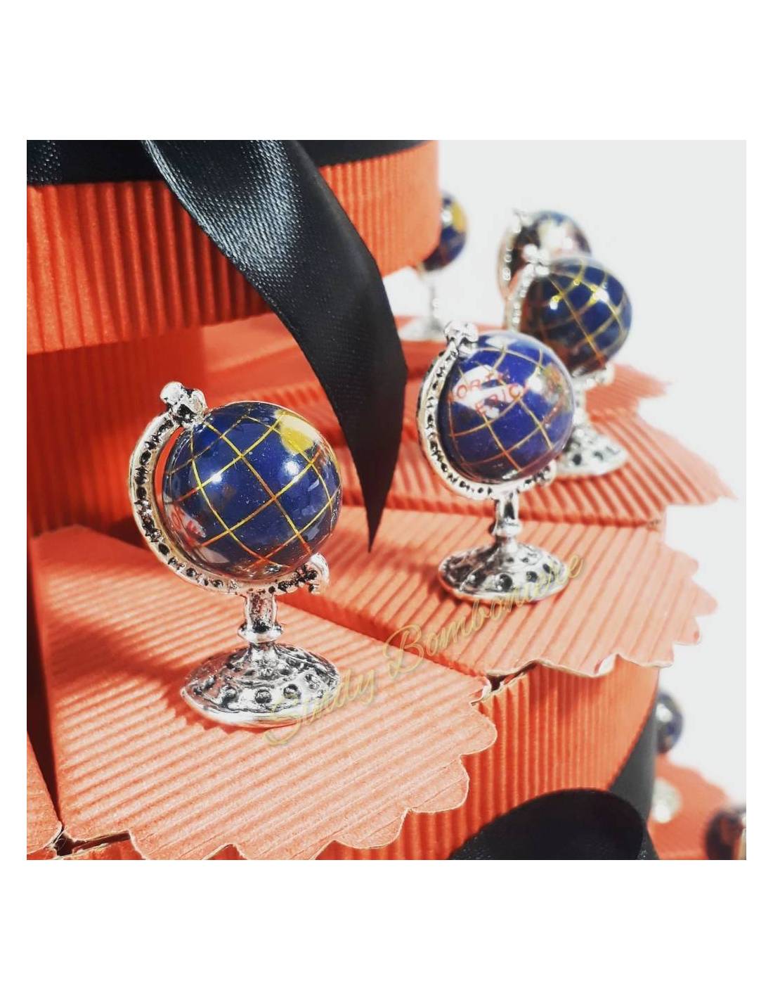 più mappamondo centrale (altezza 4 cm circa) con libro e tocco