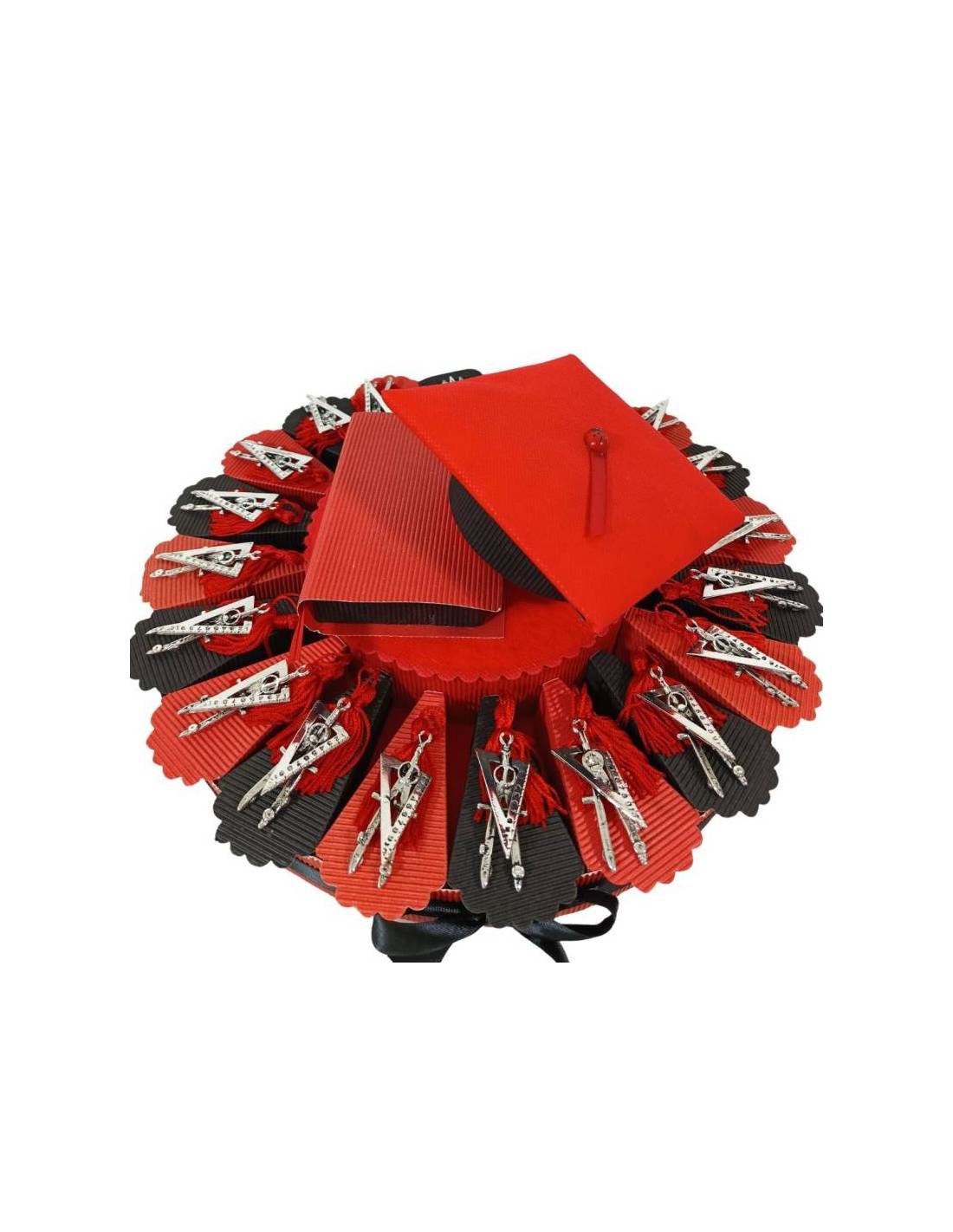 TORTA BOMBONIERA LAUREA CON SQUADRETTA E COMPASSO ARGENTATI PER LAUREA ARCHITTETTURA INGEGNERIA