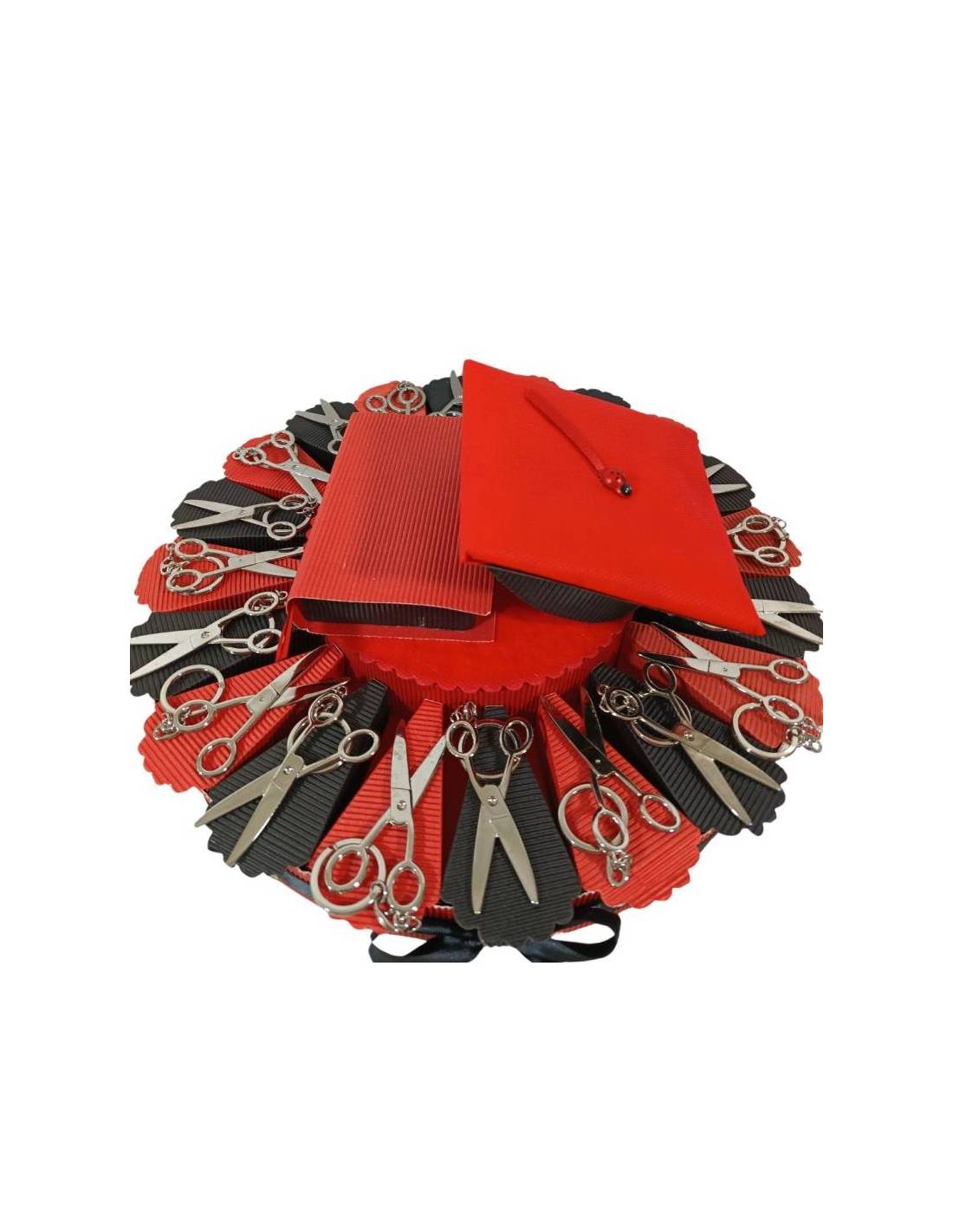 Torta porta bomboniere per eventi laurea con forbici portachiavi
