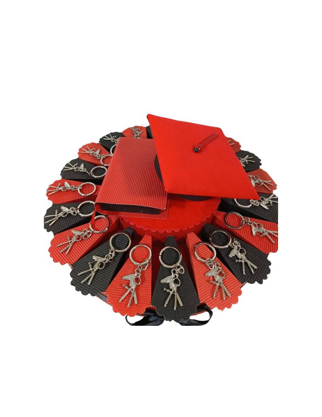 Torta bomboniera laurea portaconfetti con calibro e compasso portachiavi in zama