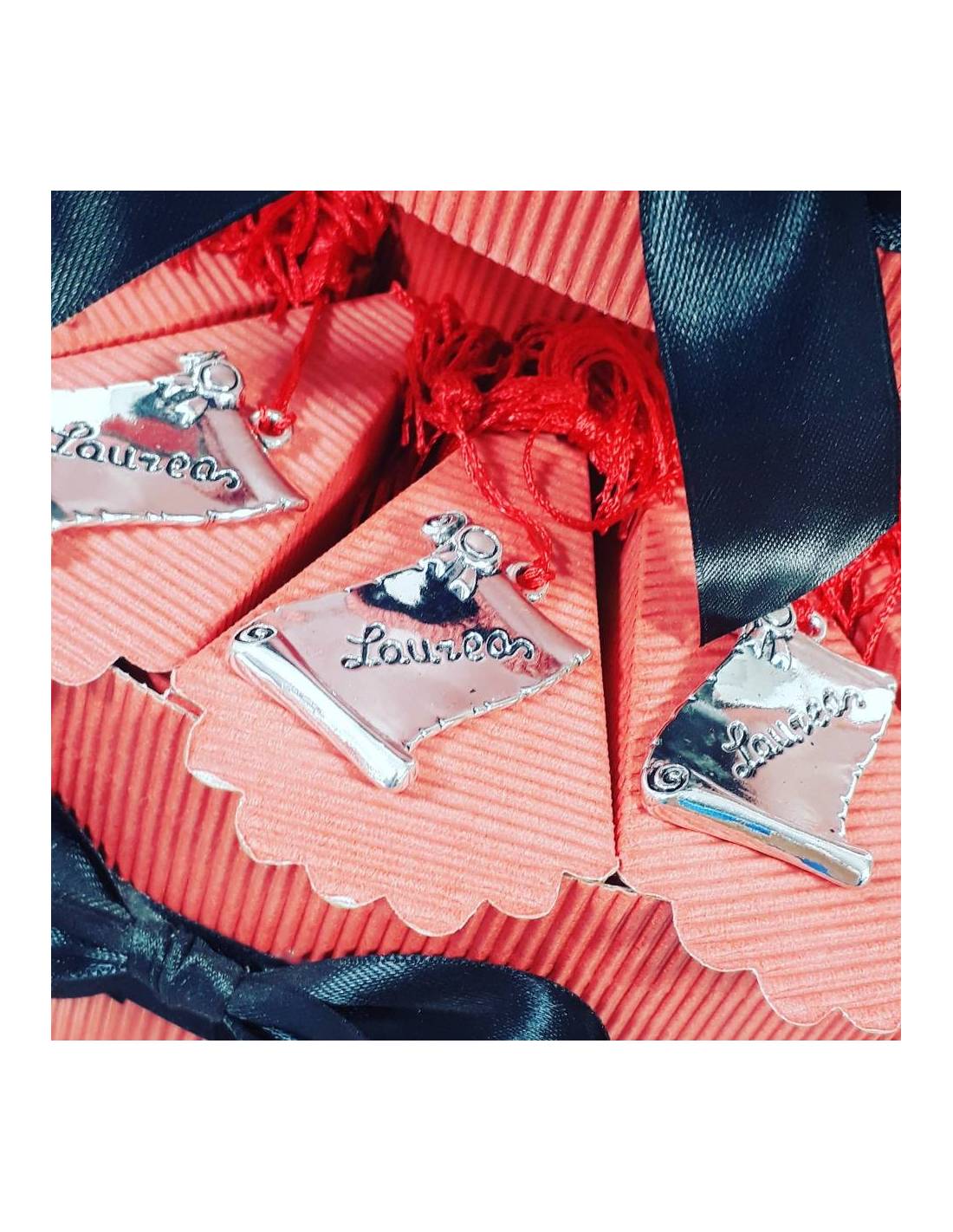 composta da fette con PERGAMENA argentata con nappina con scritta Laurea (Dimensione: 3,5 x 2,5 cm circa)