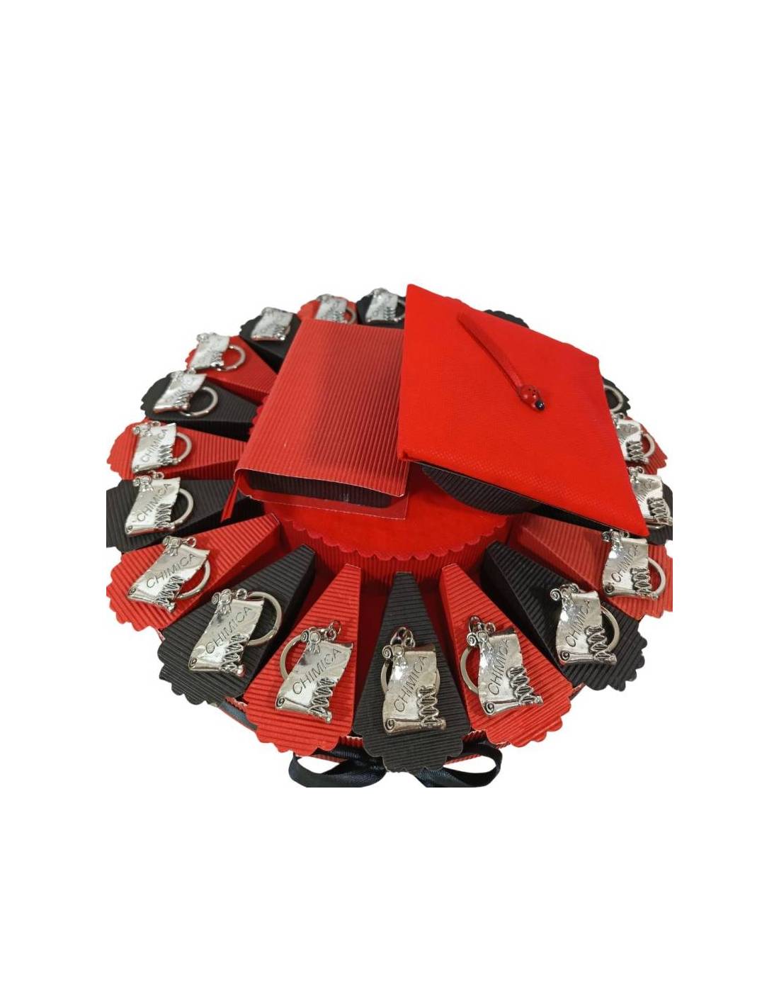 TORTA BOMBONIERA per laurea porta confetti pergamena portachiavi Chimica spedizione inclusa