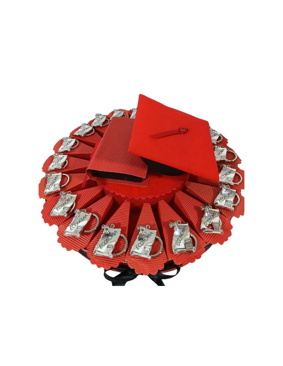TORTA BOMBONIERA per laurea porta confetti pergamena portachiavi Economia spedizione inclusa