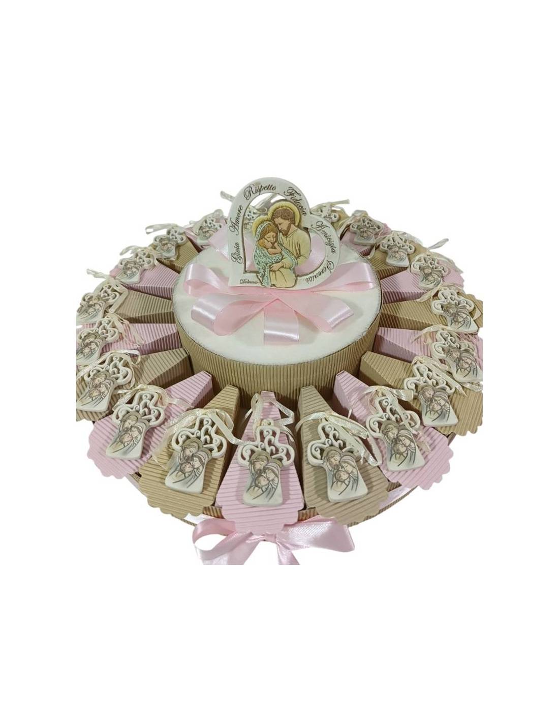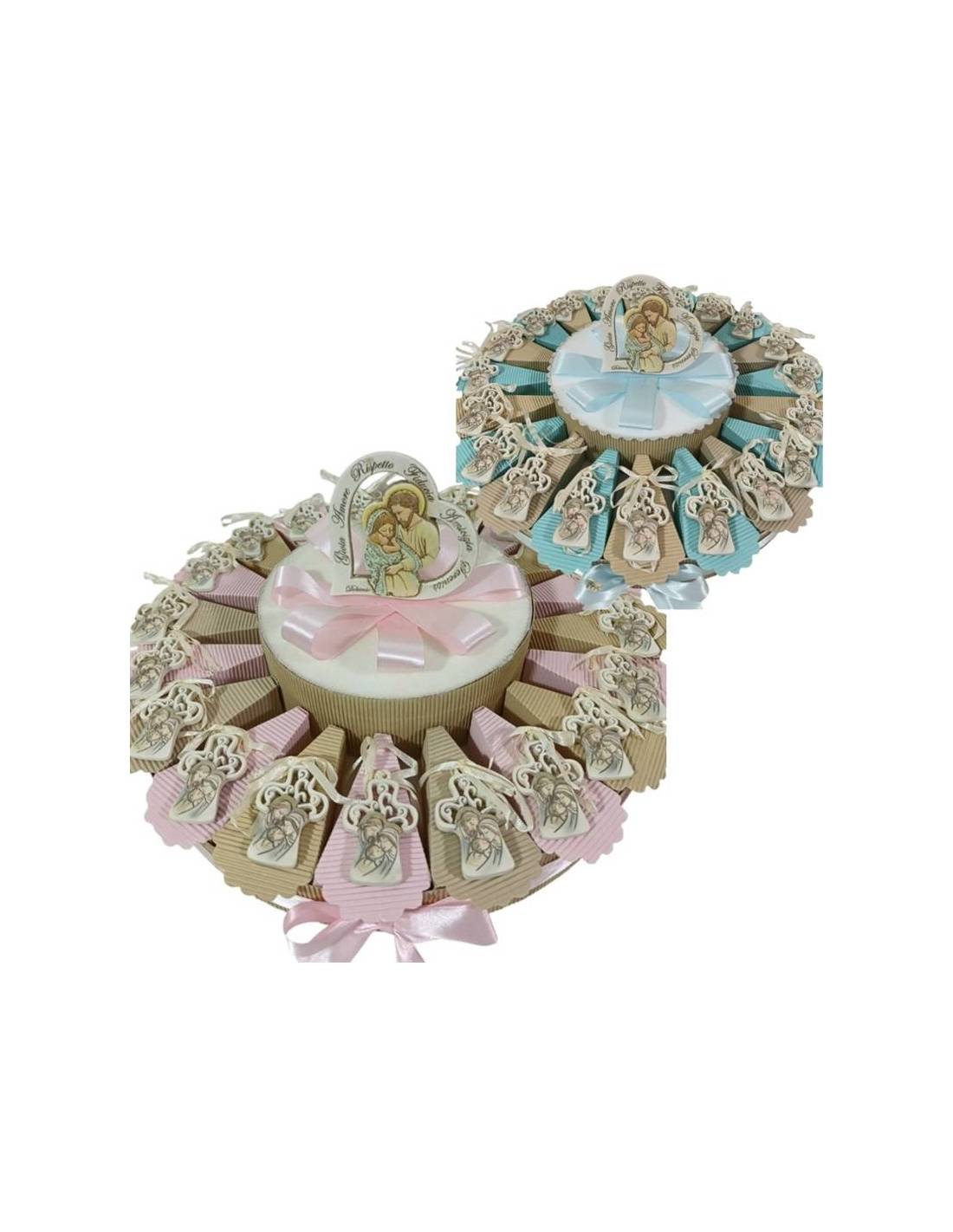 Torta portaconfetti bomboniere Battesimo pendenti croci icona sacra famiglia