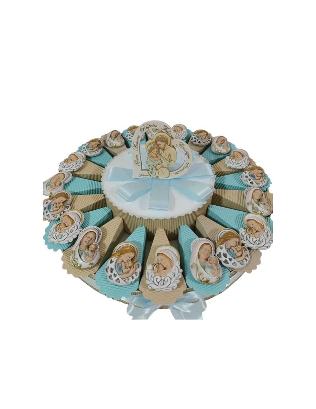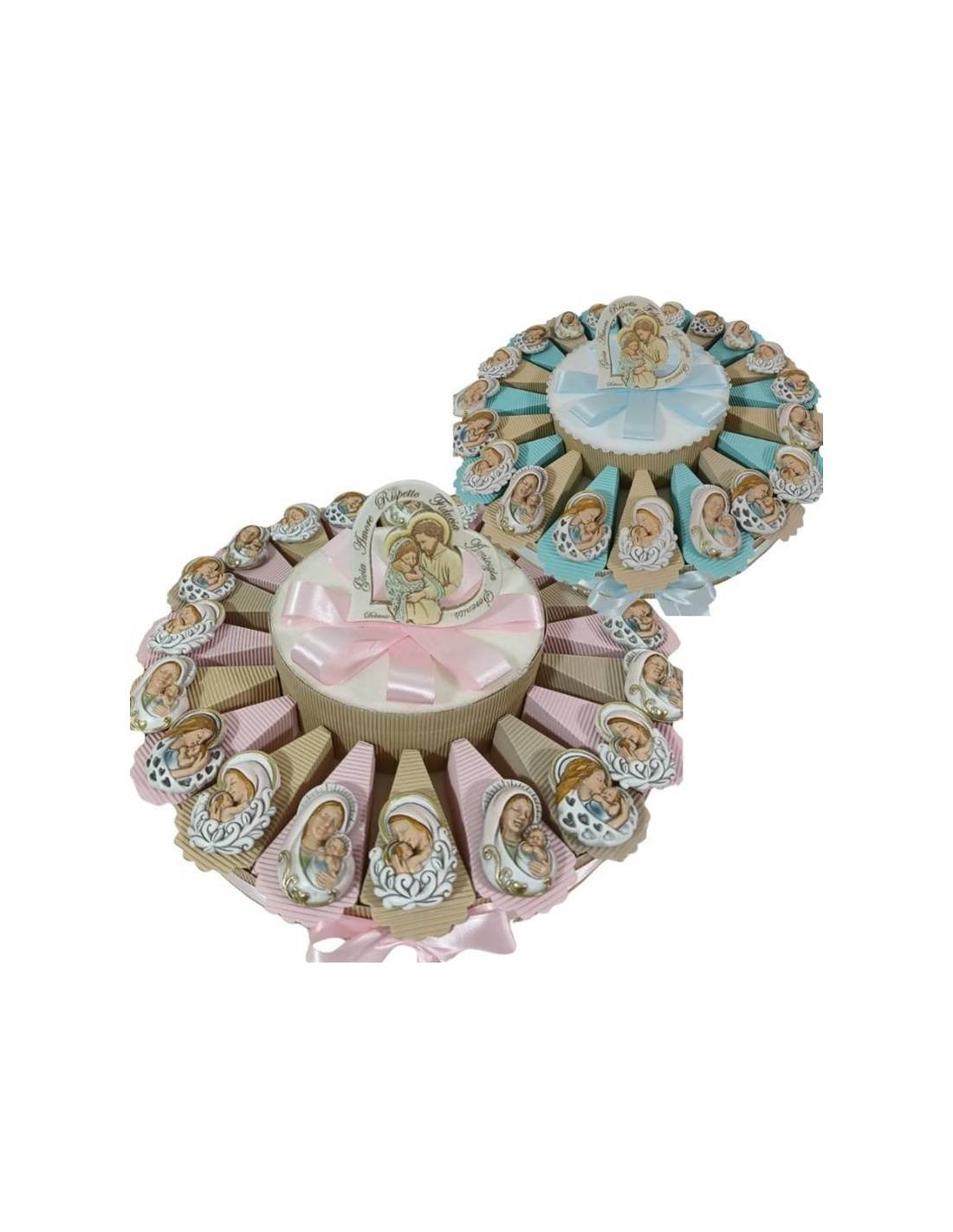 Torta bomboniera SACRA FAMIGLIA con porta confetti per battesimo, cresima bambina