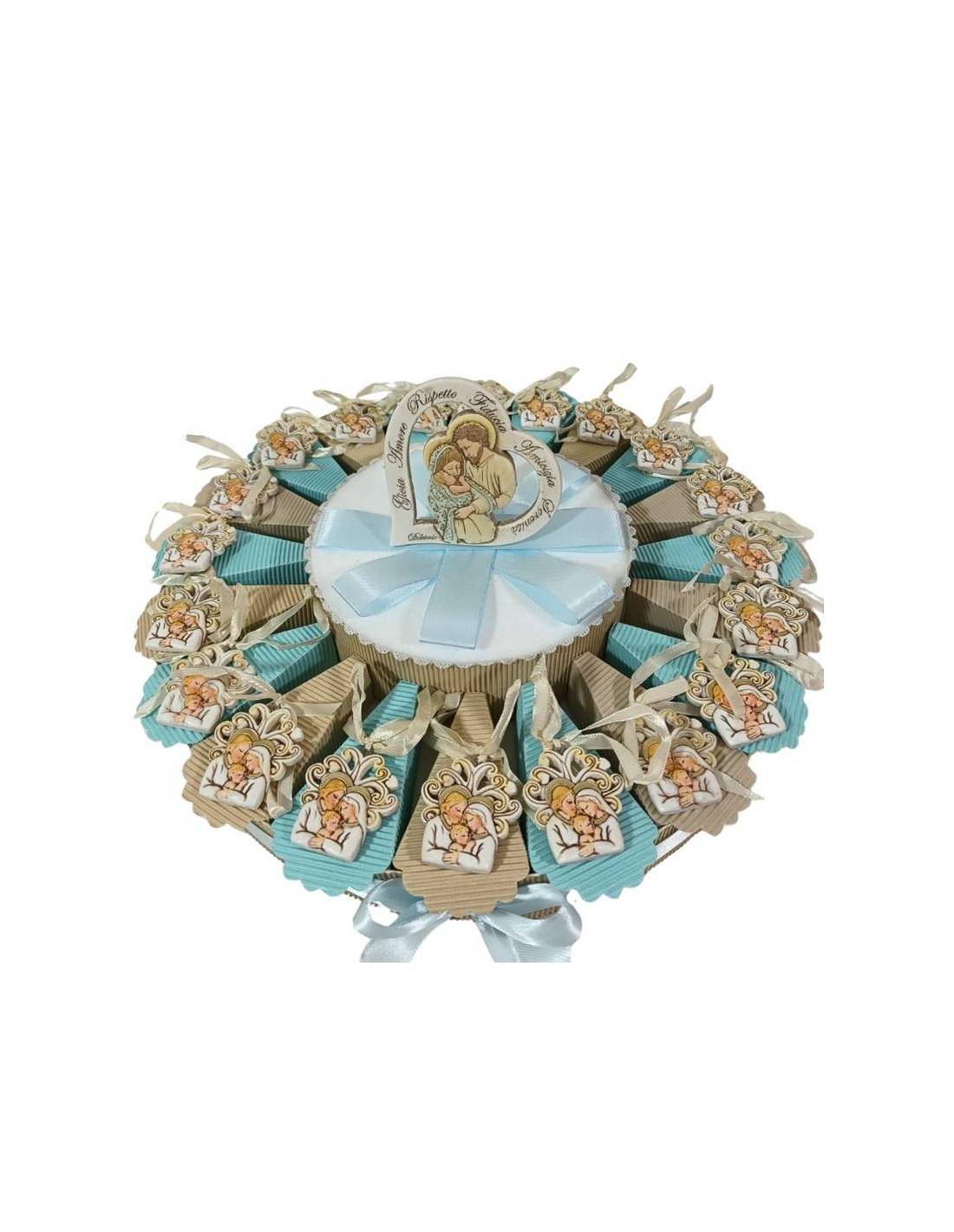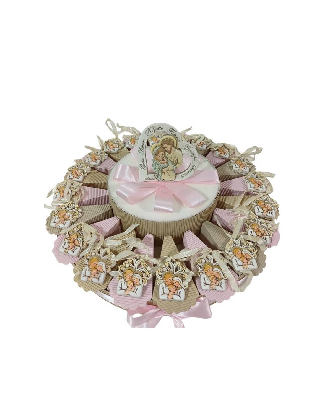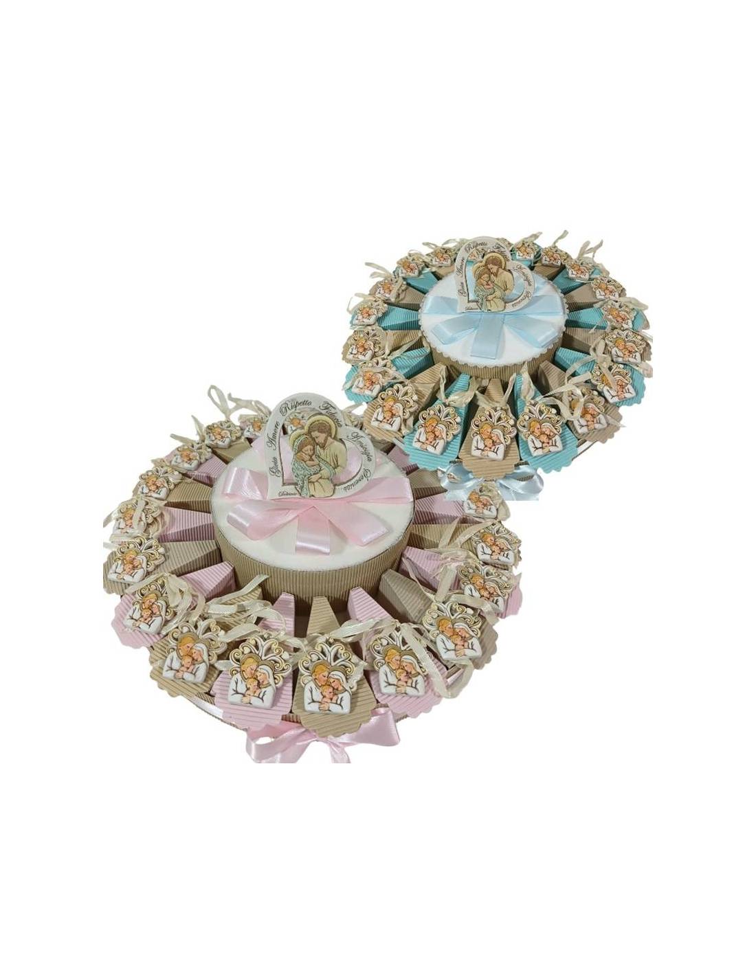 Torta bomboniere Battesimo Sacra Famiglia albero della vita glitter