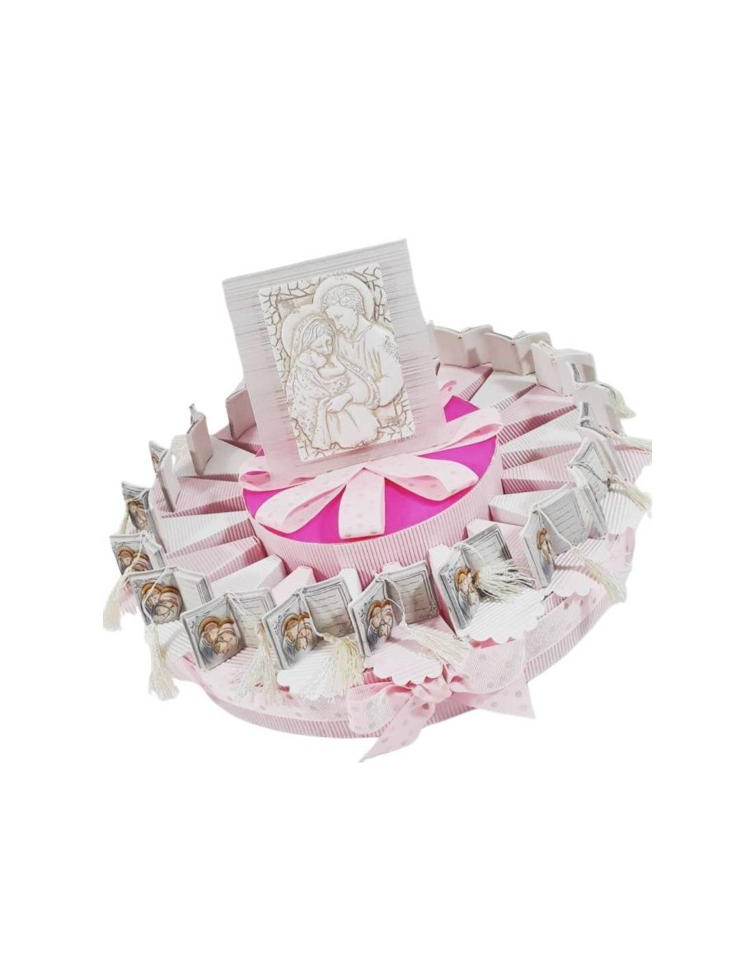 Torta bomboniera SACRA FAMIGLIA con porta confetti per battesimo, cresima bambina