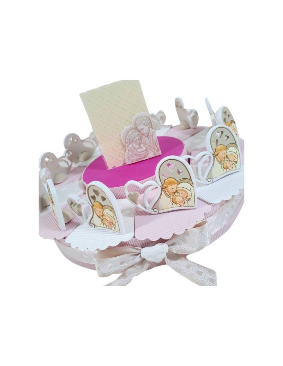 Torta bomboniera nascita battesimo bambina cuore sacra famiglia ceramica effetto pietra sacramenti