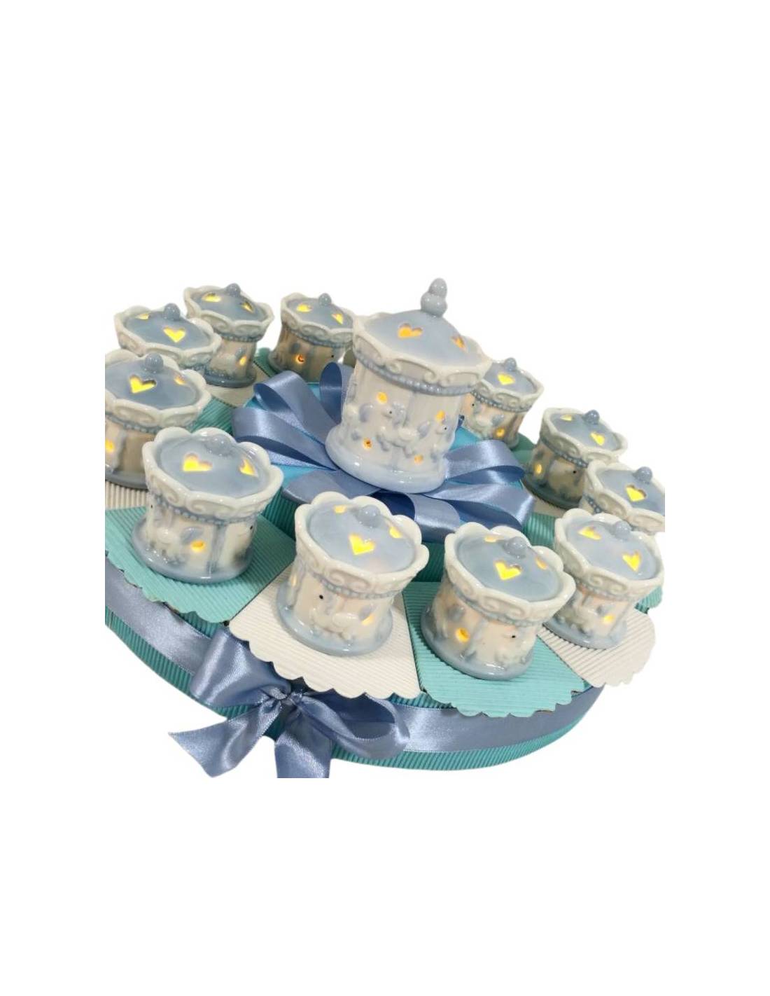 Originale torta bomboniera maschietto con giostrina in ceramica con luce led.