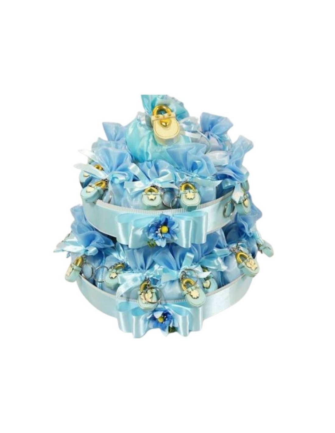 TORTA BOMBONIERA 26 SACCHETTI CON LUCCHETTO NASCITA BATTESIMO COMUNIONE CRESIMA