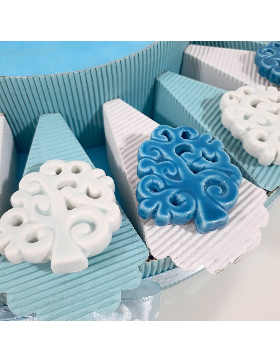Torta bomboniera con albero della vita in ceramica e centrale BATTESIMO NASCITA COMPLEANNO