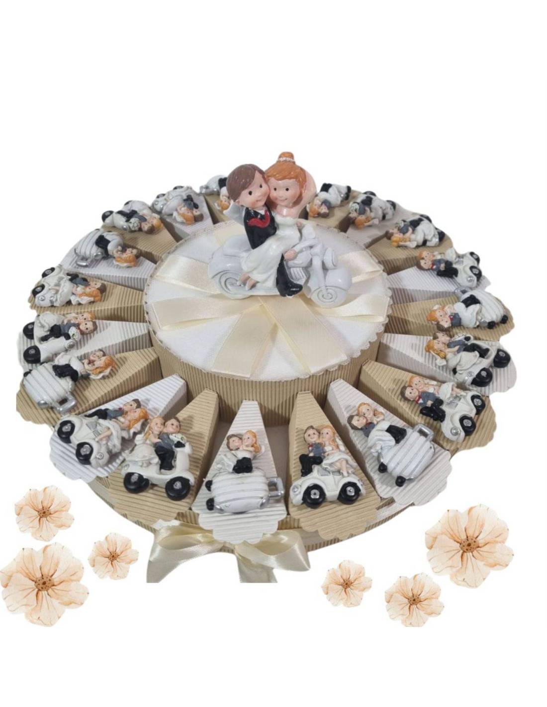 Torta di bomboniere matrimonio sposi vespa auto valigia