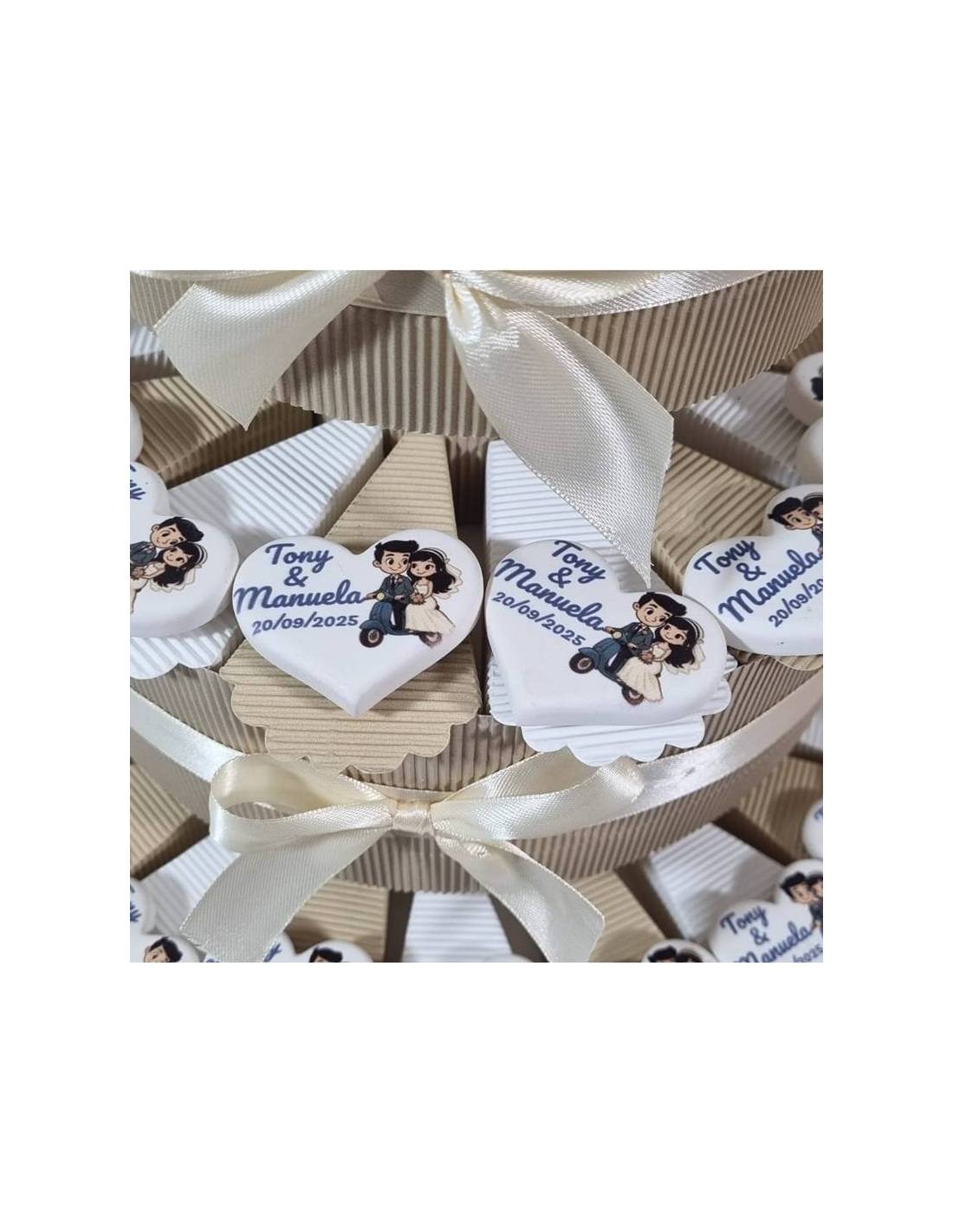 Bomboniere Matrimonio torta portaconfetti calamite cuori sposi personalizzate