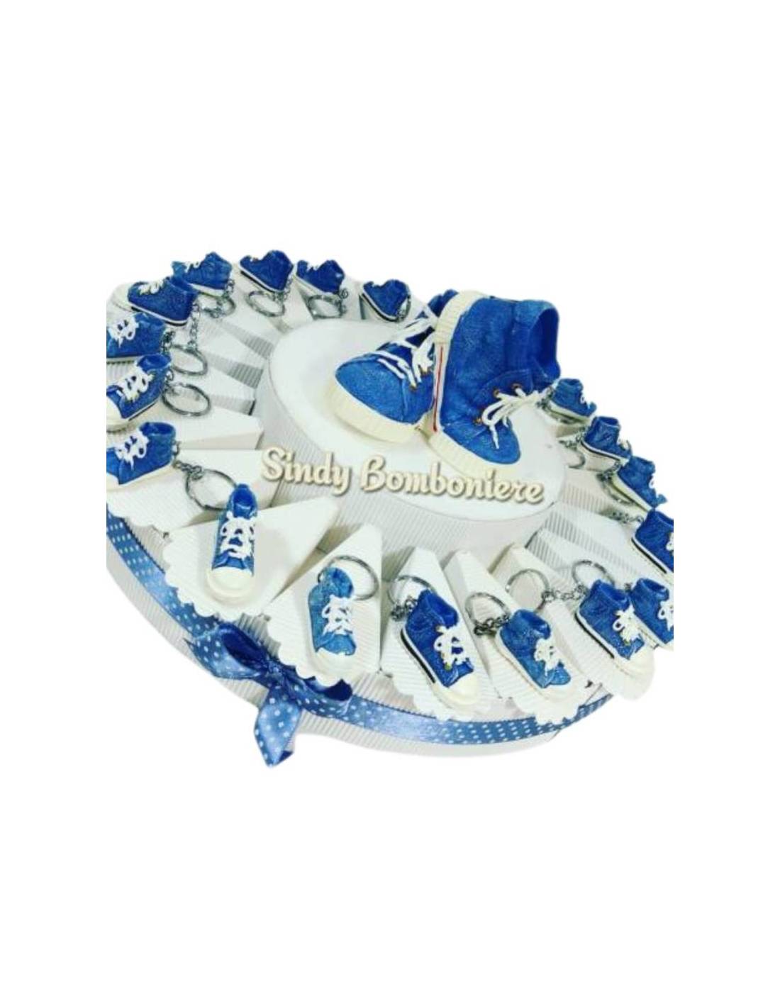 TORTA BOMBONIERA SCARPE CONVERSE PORTACHIAVI BLU 18 ANNI COMUNIONE CRESIMA