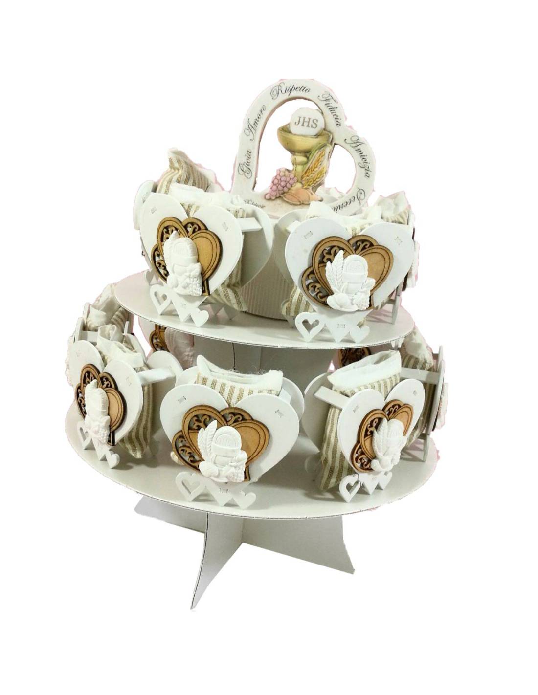 Bomboniere Comunione albero della vita cuori oro e bianchi