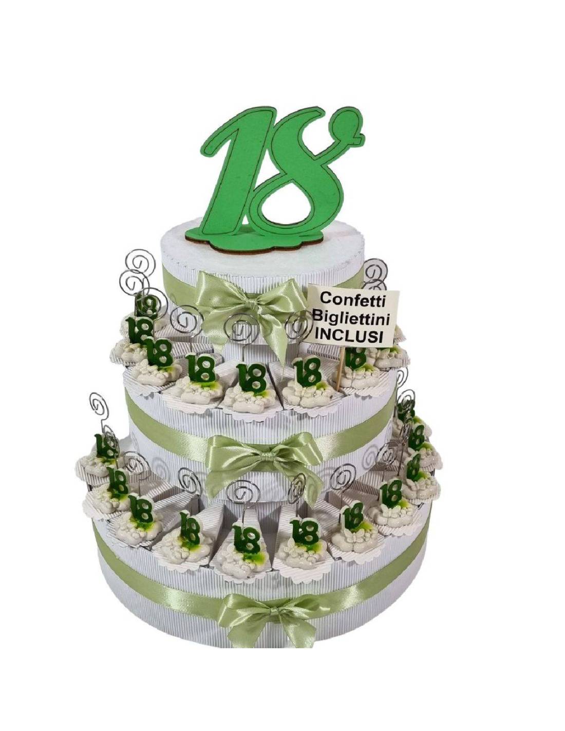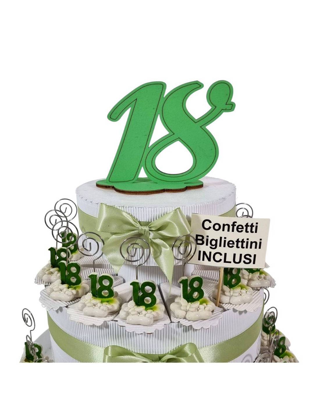 TORTA BOMBONIERA PER 18° COMPLEANNO CON NUMERO 18 CLIP CON FIORE 391174