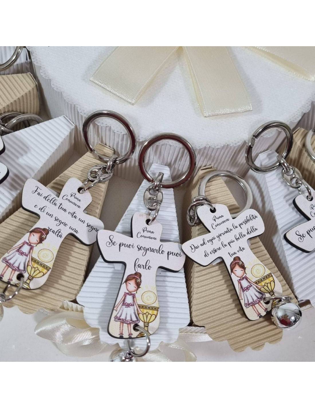 Bomboniere Prima Comunione portachiavi Bambina preghiera Tao