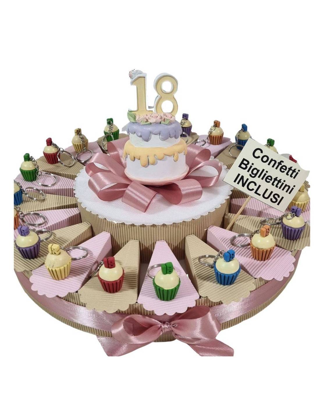 PORTA CONFETTI BOMBONIERA TORTA cucpake portachiavi 18 anni diciottesimo eventi