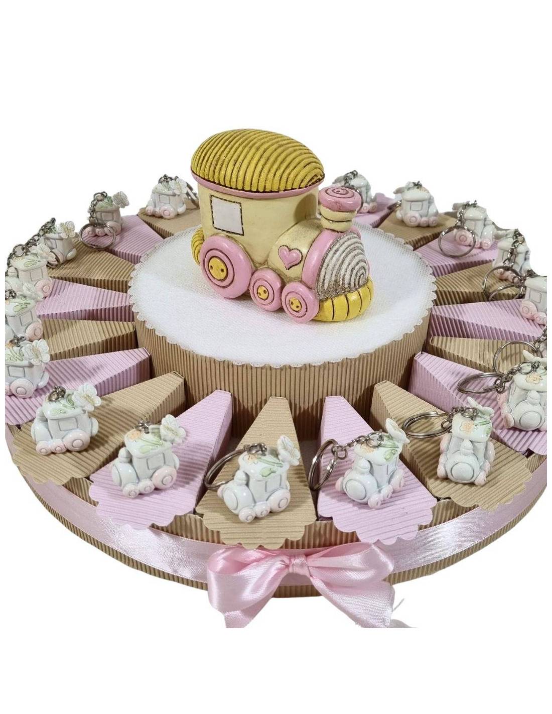 TORTA BOMBONIERE trenino portachiavi 30 fette compleanno Battesimo