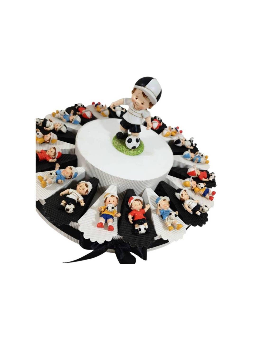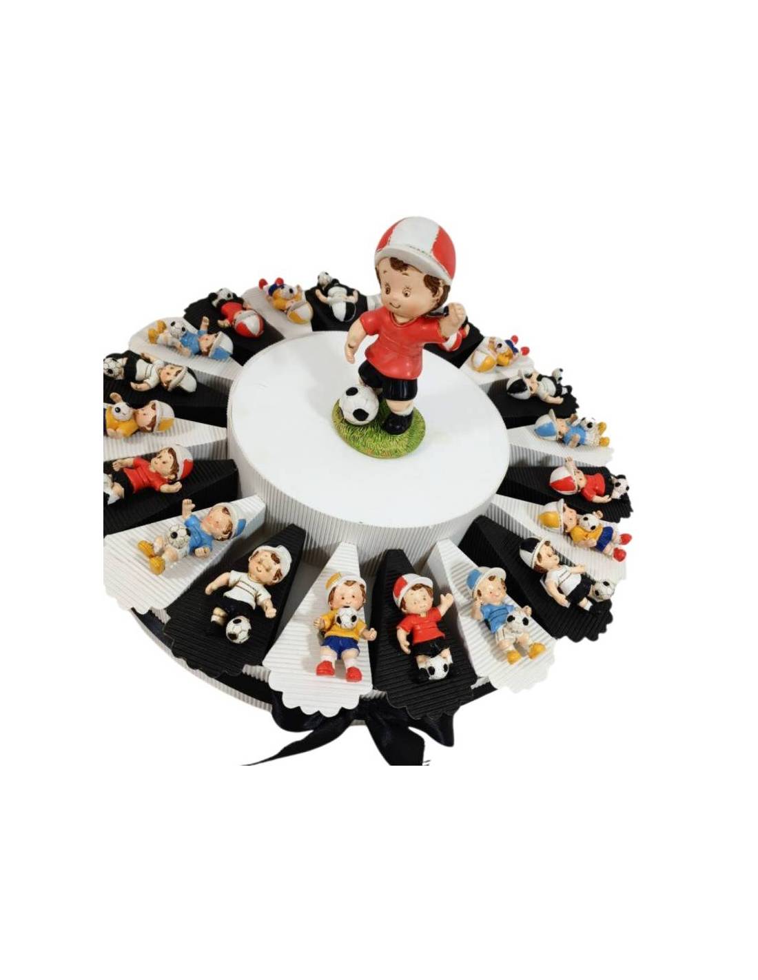 Calciatore magnete con divise calcio colorate, per ogni torta è incluso il centrale (colore centrale non ha scelta). Grazie al tasto personalizza puoi selezionare i colori delle fette, della struttura e del nastro creando così la torta della tua squadra.