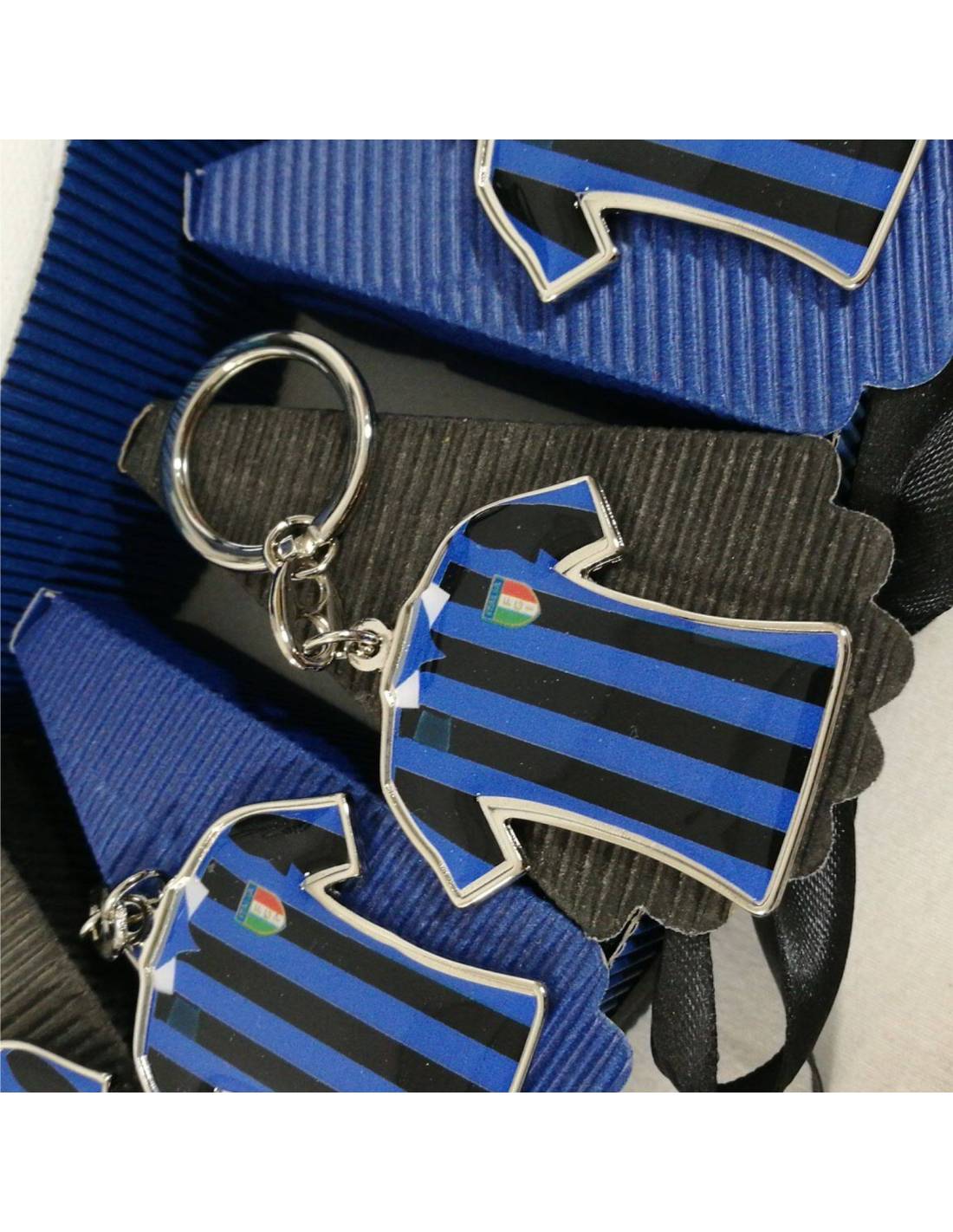 Portachiavi a froma di maglia calcio della squadra dell'inter su scatole bomboniere a forma di torta.