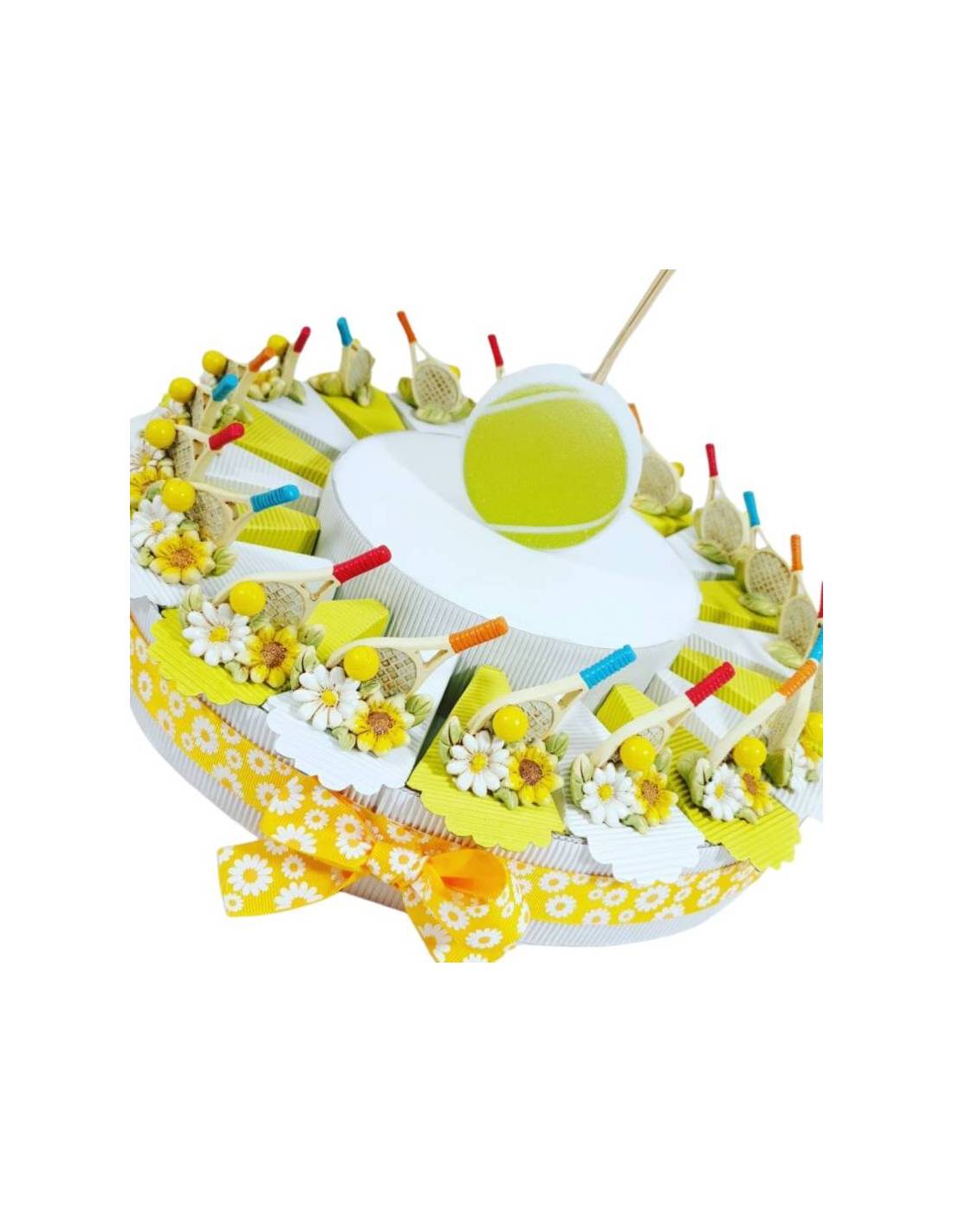 Torta Bomboniera tennis, racchetta con profumatore palla da tennis.