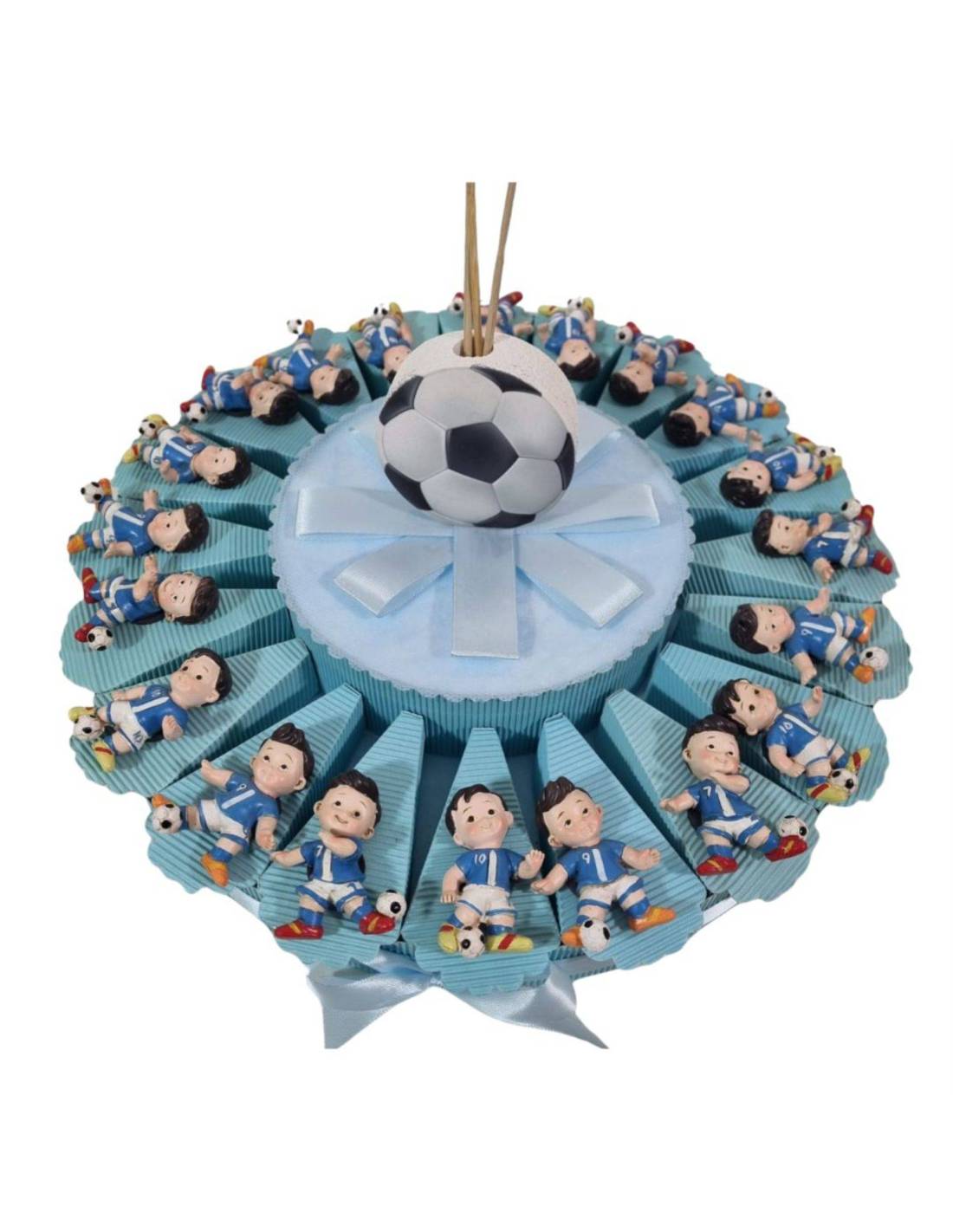 Torta bomboniera portaconfetti compleanno nascita comunione con bambino che gioca a calcio