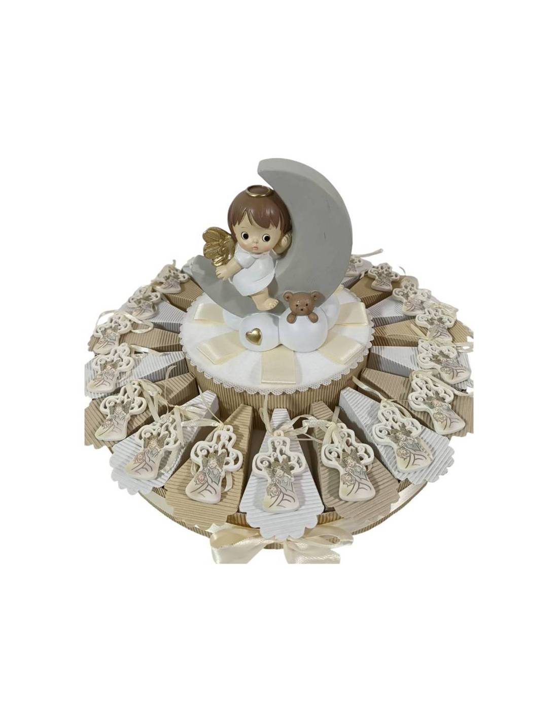 Bomboniere battesimo, comunione angelo Gabriele confezionate su torta confetti inclusi