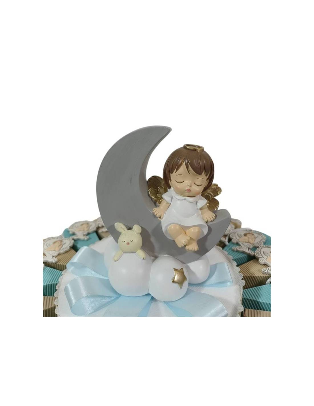 - + CENTRALE SALVADANAIO (uno dei due in foto in base alla disponibilità in magazzino) angelo su mezza luna (Dimensione: 12x14 cm circa) CONFETTI E BIGLIETTINO (NOME,EVENTO,DATA)