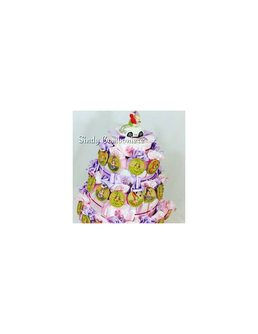 *La torta vi arriverà a casa così come in foto. Tuttavia a seconda della disponibilità della casa produttrice potrebbe esserci una variazione dei nastri e dei fiori. Il Team di Sindy Bomboniere cerca di realizzare la torta il più possibile uguale alla foto.