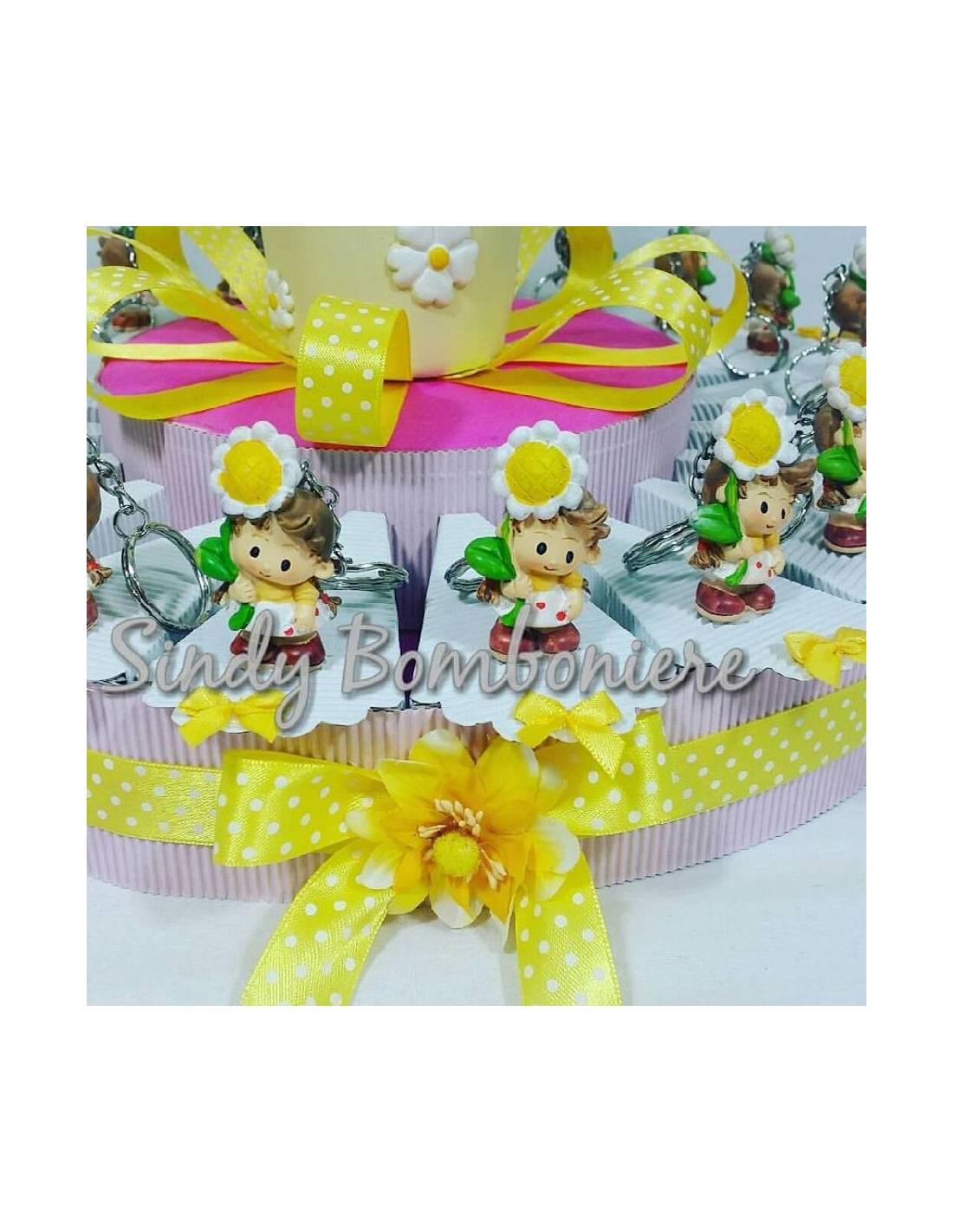 TORTA BOMBONIERA portachiavi bambina fiore NASCITA BATTESIMO COMPLEANNO COMUNIONE